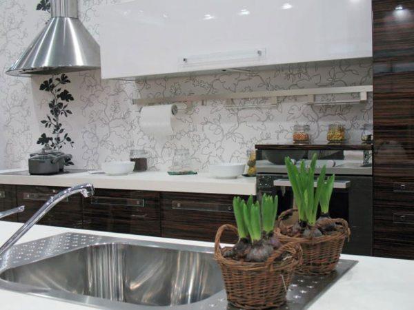 На кухня дизайнери радять використовувати миються панелі або кахельну плитку – через постійну готування їжі стіни тут піддаються постійному забрудненню і впливу вологи і високих температур. Але якщо ви все-таки хочете поклеїти бамбукові шпалери, найкраще оформити ними робочу зону.