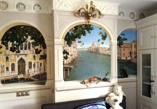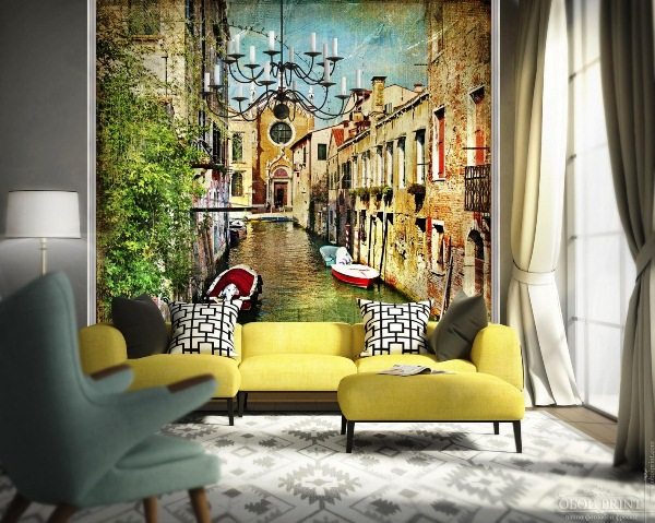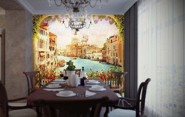 Якщо світла у вашій кімнаті буде мало, сюжет буде сприйматися як зображення вечірньої Венеції, що також внесе частку романтики в ваш інтер’єр.
