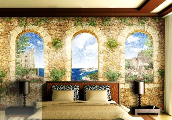 Порада: малюнок не буде здаватися зайвим, якщо забезпечити його поєднання з іншими матеріалами: наприклад, зображення вогню можна обкласти каменем, створивши подобу каміна, а пейзажі оформити у вигляді сюжету за декоративним вікном.