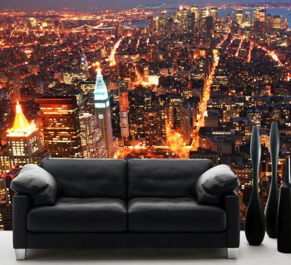 Ще одним підходящим варіантом для приміщень, оформлених в таких стилях, вважаються фотошпалери Манхеттена. Особливою вишуканістю відрізняються фотошпалери цього міста в нічний час, оскільки достаток яскравих ліхтарів, рекламних вивісок та інших насичених фарб здатні відтворити атмосферу міського драйву прямо у вас вдома: